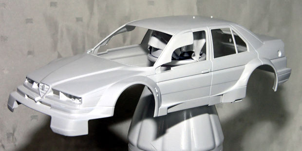 | Für die anstehende DTM-Serie werde ich diesen Alfa rennfertig machen. Die filigrane Karosserie bedarf allerdings einiger Verstärkungen. |