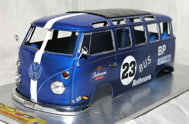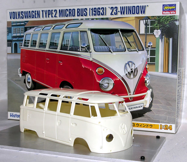 | Als bei uns im Renncenter die Idee aufkam doch mal eine Fun-Serie mit VW-Bullis durchzuführen stimmte ich spontan zu und besorgte mir diesen wunderschönen Bausatz von Hasegawa. Sowie jetzt auch noch ein Reglement für die Serie festgelegt ist wird mit dem Bau begonnen. |