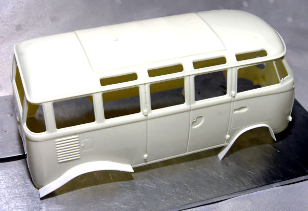| In der Zwischenzeit ist das Reglement für die "The Transporter" genannte Rennserie veröffentlicht worden und zu meinem Leidwesen sind Kotflügelverbreiterungen und ein entsprechender Radstand erlaubt. Obwohl ich sowas noch nie gemacht habe muß ich nun mitziehen um konkurrenzfähig zu bleiben. Das "Grundgestell" habe ich schon mal verklebt und werde demnächst berichten was daraus geworden ist. |