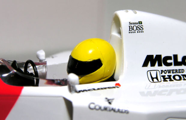 Der markante Helm des britischen Ausnahmefahrers ist exakt nachgebildet.