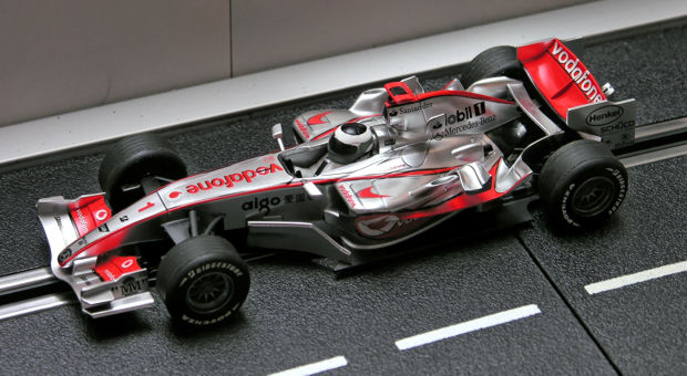 Scalextric UK Der Dienstwagen des Weltmeisters 2006 in seiner ersten Saison bei McLaren. Wahnsinnig schnell und wahnsinnig hochglänzend silber. |